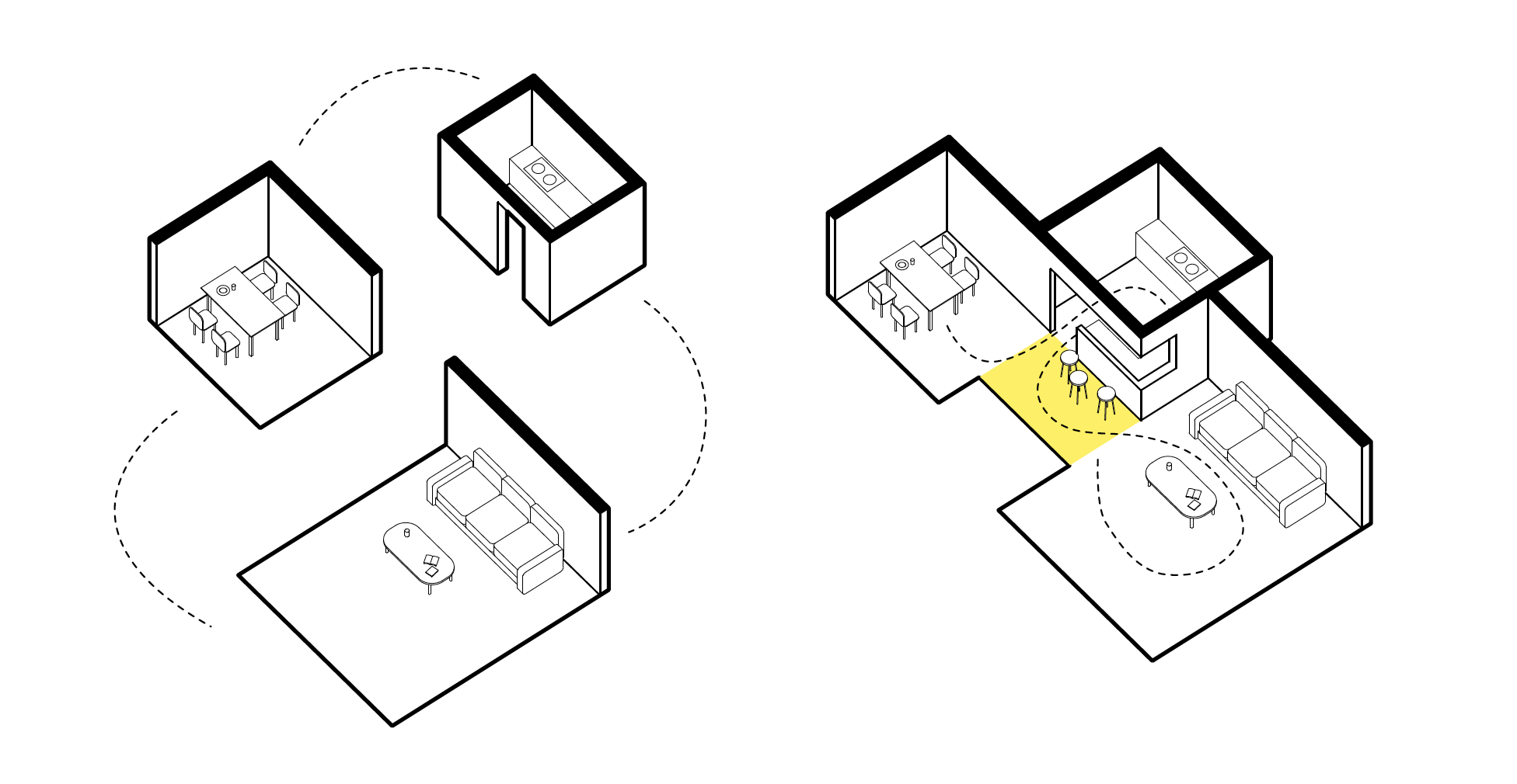 This minimalist home is centred on the kitchen, from which the rest of the spaces expand and flow. Designed as the heart of family connection and daily interaction, it anchors the circulation of the house and defines its spatial rhythm. Simple, sculptural forms carve out areas that balance openness with intimacy, while light and shadow animate the interiors.