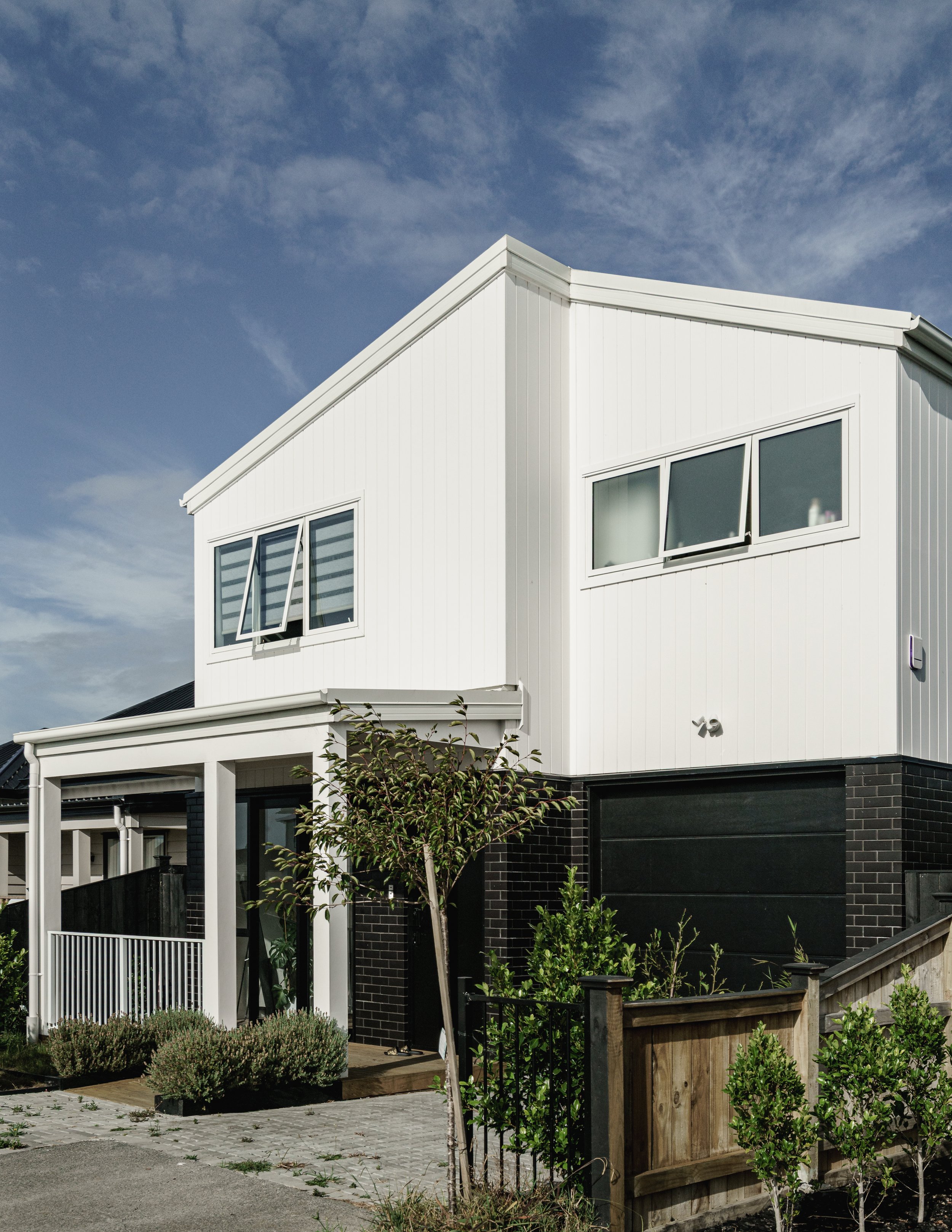 The defining gesture of Hari Road House is a sleek flashing line that wraps around the façade, aligned precisely with the ground floor joinery to create a clean horizontal cut between levels and reinforce the clarity of form.